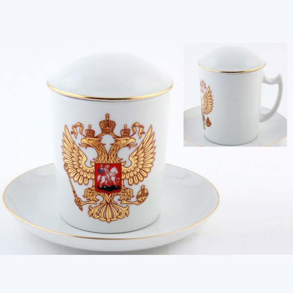 Чайные/кофейные парыЧайная пара,пиала → Бокал с блюдцем и крышкой «Двуглавый орел» 380 мл (форма «Снежное утро»)