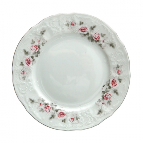 Набор тарелок 25 см «Бледные розы, отводка платина» (форма "Bernadotte")