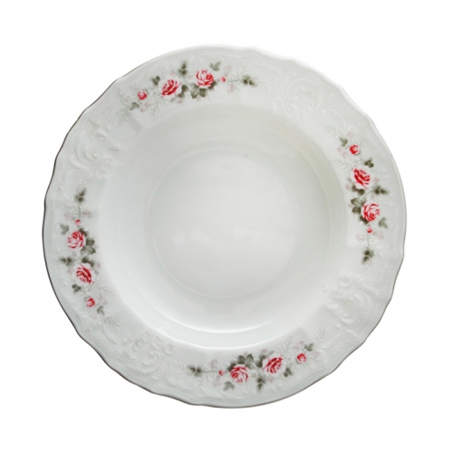 Набор тарелок глубоких 23 см «Бледные розы, отводка платина» (форма "Bernadotte")