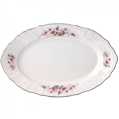 NEW Блюдо овальное 34 см «Бледные розы, отводка платина» (форма "Bernadotte")